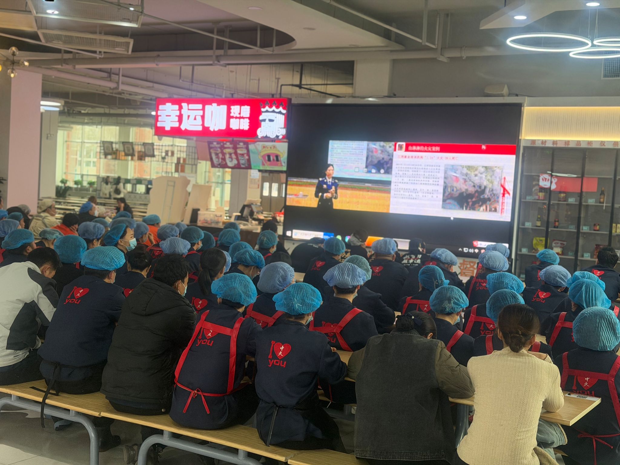 餐厅工作人员集中观看学习