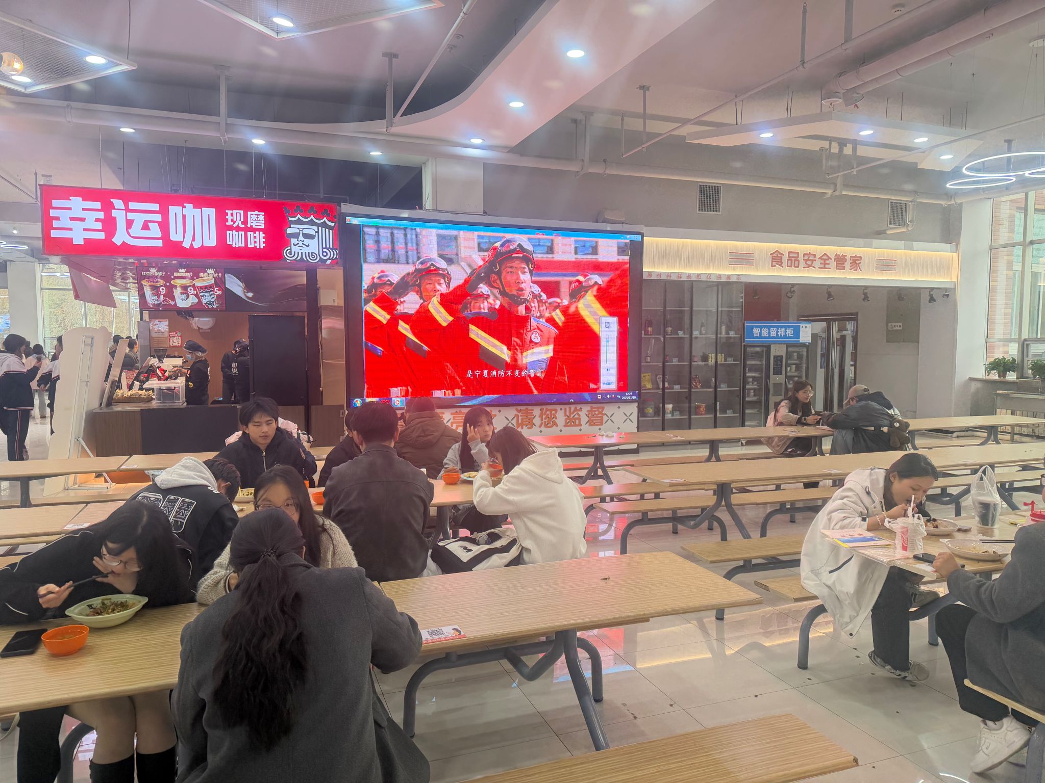 学生餐厅循环播放消防宣传片